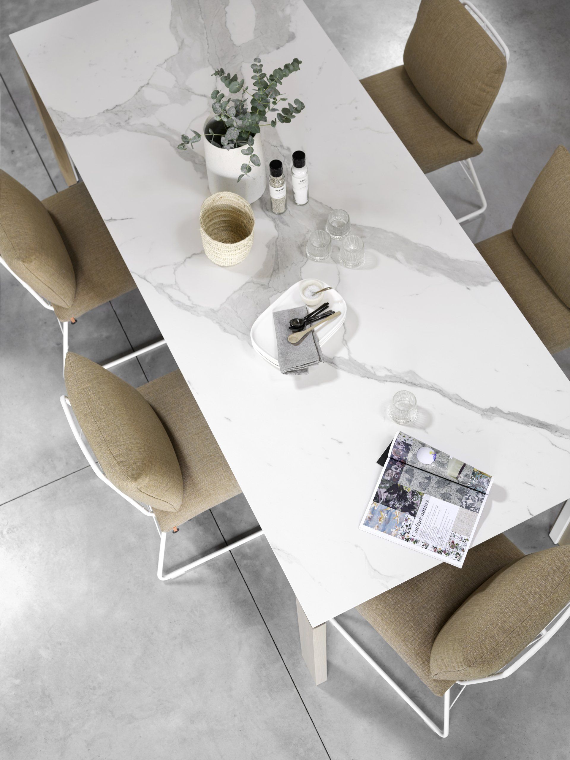 Immer mehr Interieur-Liebhaber kehren zu natürlichen Materialien in ihrer Einrichtung zurück. Mit seiner Keramik-Tischplatte, die optional durch eine Verlängerung aus demselben Material ergänzt wird, erfüllt der Terra-Tisch dieses Bedürfnis nach Authentizität und Schlichtheit.